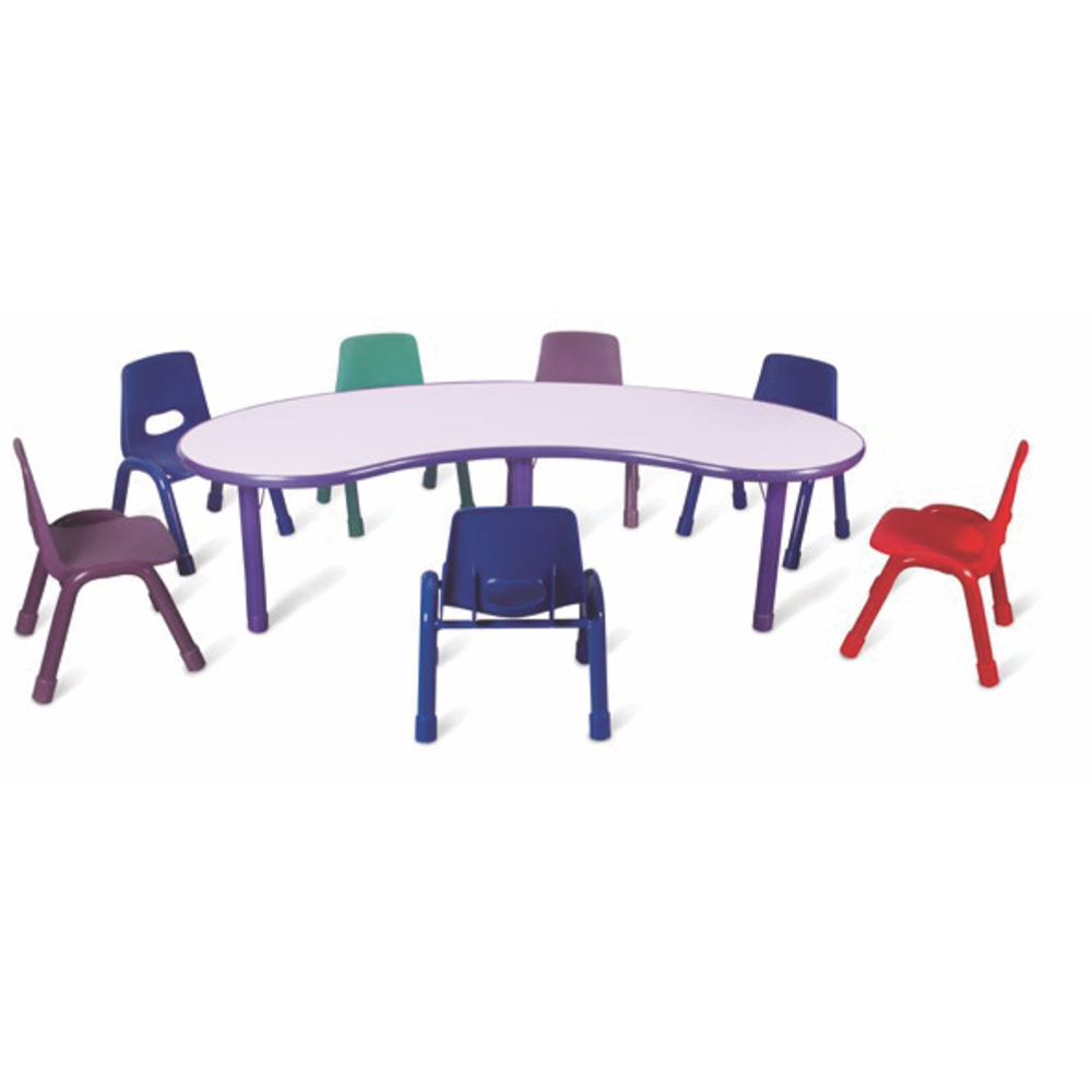 Mesa com tampo revestido em laminado melamínico com bordas em pvc colorido