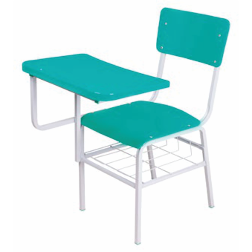 Cadeira universitária com assento e encosto em resina plástica pp e prancheta deslizante em resina abs.