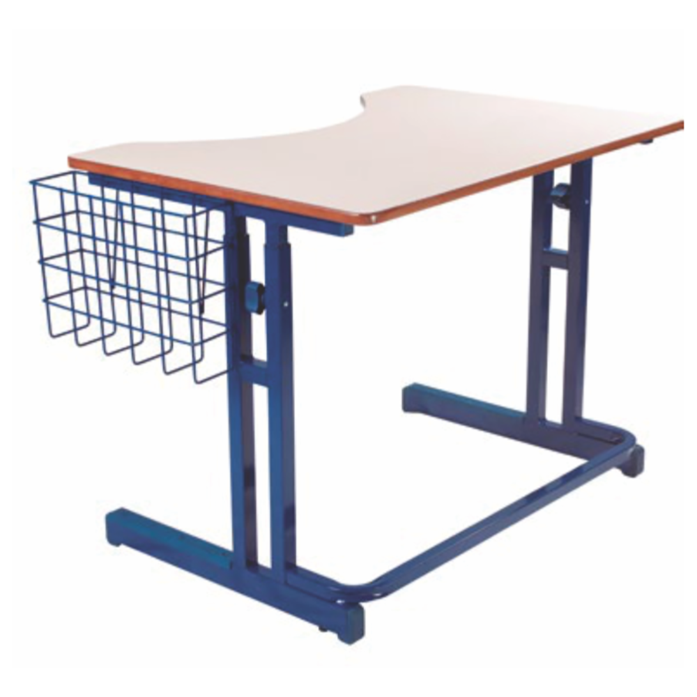 Mesa pcr, tampo revestido com laminado melamínico, cesto porta livros na lateral, ajuste de altura em 4 níveis